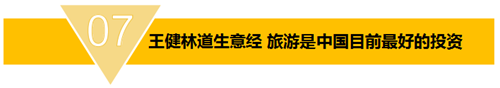 9月8日,万达集团董事长王健林在2016厦门国际投资洽谈会上发表演讲,称旅游是最好的投资之一,并给出了五个理由。第一,旅游投资是国家的产业方向,第二,旅游是最长寿的投资,第三,旅游是最环保的投资,第四,旅游是能发财的投资,第五,旅游是最富民的投资。