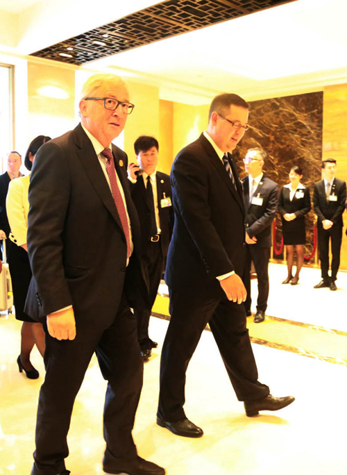 2016年9月4日上午11点,雅高酒店集团大中华区区域餐饮总监/山东区域运营总监柯瑞文、杭州索菲特西湖大酒店总经理范斯先生和酒店业主代表/副总经理竺丽萍女士,于酒店正门口热情迎接欧盟委员会主席让-克洛德•容克。