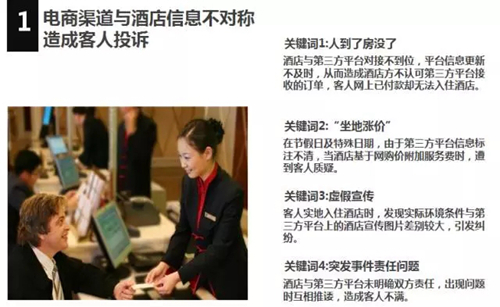 “酒店行业常见的舆情风险主要集中在电商渠道与酒店信息不对称造成的客人投诉,如到店没房、酒店节假日‘坐地涨价’、酒店虚假宣传等,此外还有入住酒店后的人身、财产安全问题,酒店设施与卫生问题,餐饮、食品安全问题造成的舆情危机”,中国传媒大学互联网信息研究所/艾利艾智库研究总监刘蕾说,很多危机是因为酒店线下工作做得不到位。如果在线下做好危险排查,就可以避免形成舆论危机。