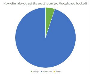 只有5%的受访者表示被分配了他们所期望的房间,95%的受访者“有时”得到了他们所期望的房间。