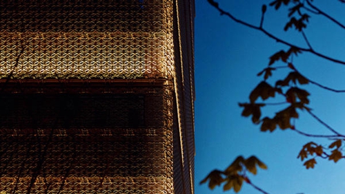 东利惠的设计灵感源自“宝箱”的创意,三菱地所设计(Mitsubishi Jisho Sekkei)和 NTT Facilities 负责把构想转变为现实。东利惠表示:“江户小纹是一种古老的和服纺织物。从远处看似乎只有一种颜色,但从近处看,就能看到复杂花纹和精致细节。我们想在建筑上呈现这种效果:从远处看是黑色,走近就能清晰地看到江户小纹图案。”