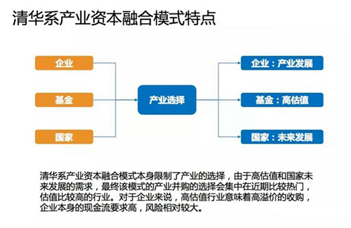 不过,清华系产业资本融合模式本身限制了产业的选择,由于高估值和国家未来发展的需求,最终该模式的产业并购的选择会集中在近期比较热门,估值比较高的行业。对于企业来说,高估值行业意味着高溢价的收购,企业本身的现金流要求高,风险相对较大。