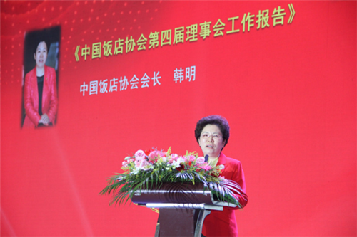 韩明会长做《中国饭店协会第四届理事会工作报告》