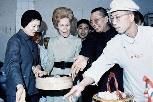 尼克松夫人还跑到饭店后厨去参观,厨师每做一道菜她就尝一道,“还没等菜上桌,她就已经吃饱了”。