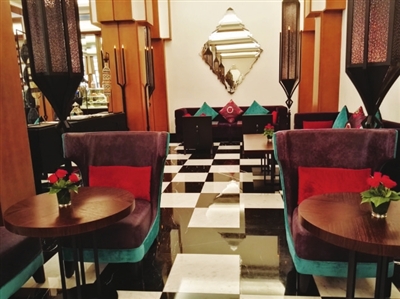 国际品牌印象较深刻的是四季和索菲特酒店。感觉索菲特的设计在各个城市有些不同,四季则一如既往,保持着内敛的豪华。在卡萨布兰卡我们入住的是索菲特酒店,房间面海的玻璃窗上贴满了圆点的装饰,只能在圆点之间的空隙张望窗外的风景,只一会便有些头晕。回国后和国内的酒店业朋友聊起,才知有可能是设计师故意所为,是想让客人记住这家酒店,不知索菲特这位设计师是否这个意图,反正记者确实记住了这家酒店。卡萨布兰卡和国内很多城市一样,正在大兴建设,四处是工地。或许设计师想借这样的设计不让外面的脚手架给客人留下不好的印象吧。马拉喀什的索菲特却尽显豪华,体量大,普通客房区和SPA客房区有不同的区域,总共有300多间客房,3个泳池。从泳池望去,粉红色建筑,密集的绿植,大红遮阳伞,白色吊床,蓝色池水,米色沙发上堆满浅蓝浅粉花纹的麻质靠垫,让人有陷进去便不想起来的感觉。